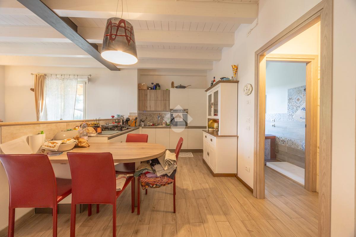 Piano terra: luminosa zona giorno open space con cucina e soggiorno/pranzo, comodo ripostiglio e bagno finestrato completo.